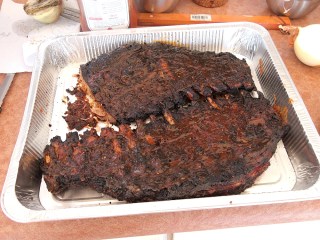 בנוסף לשדרה של הצלעות אנחנו נצטרך גם 6 כוסות סיידר או מיץ תפוחים, 2 לימונים שלמים חצויים, כ-2/3 כוס תערובת התבלינים הבסיסית (ראו אחד הפוסטים המוקדמים יותר), ו-1/2 1 כוס רוטב הברביקיו (אני ממליץ על הרוטב שנתתי בפוסט הקודם).