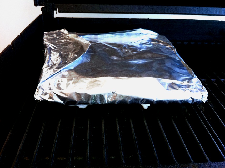 וגם בנוסף לכל זה נצטרך אביזר גריל מיוחד במינו – כמה לבנים עטופים בנייר כסף. כן כן, לבנים כאלה, שמרצפים בהם את המדרכות ברחובות. אז לוקחים כמה, ועוטפים ב-2-3 שכבות של נייר כסף. זה ישמש אותנו בתור משקולת.