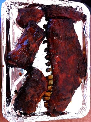 כחצי שעה לפני סיום הצלייה אני מבריש את הבשר ברוטב הברביקיו שלי, וזהו… הבשר מוכן כאשר הצלעות עצמן גלויות ל-2 ס"מ, ומרגישים שאפשר להפריד צלעות בידיים.