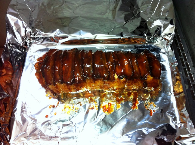 את הזיגוג יוצקים על הבשר ב-5 דקות אחרונות של הצלייה. זה מאוד חשוב לא לעשות את זה מוקדם מדיי, כי אחרי 5-7 דקות הסוכר שבזיגוג יתחיל להישרף, ותקבלו את הטעם המר של סוכר שרוף. איך תדעו מתי? כאשר המדחום יראה לכם טמפרטורה נמוכה ב-3-5 מעלות מזו שאתם רוצים להגיע אליה.