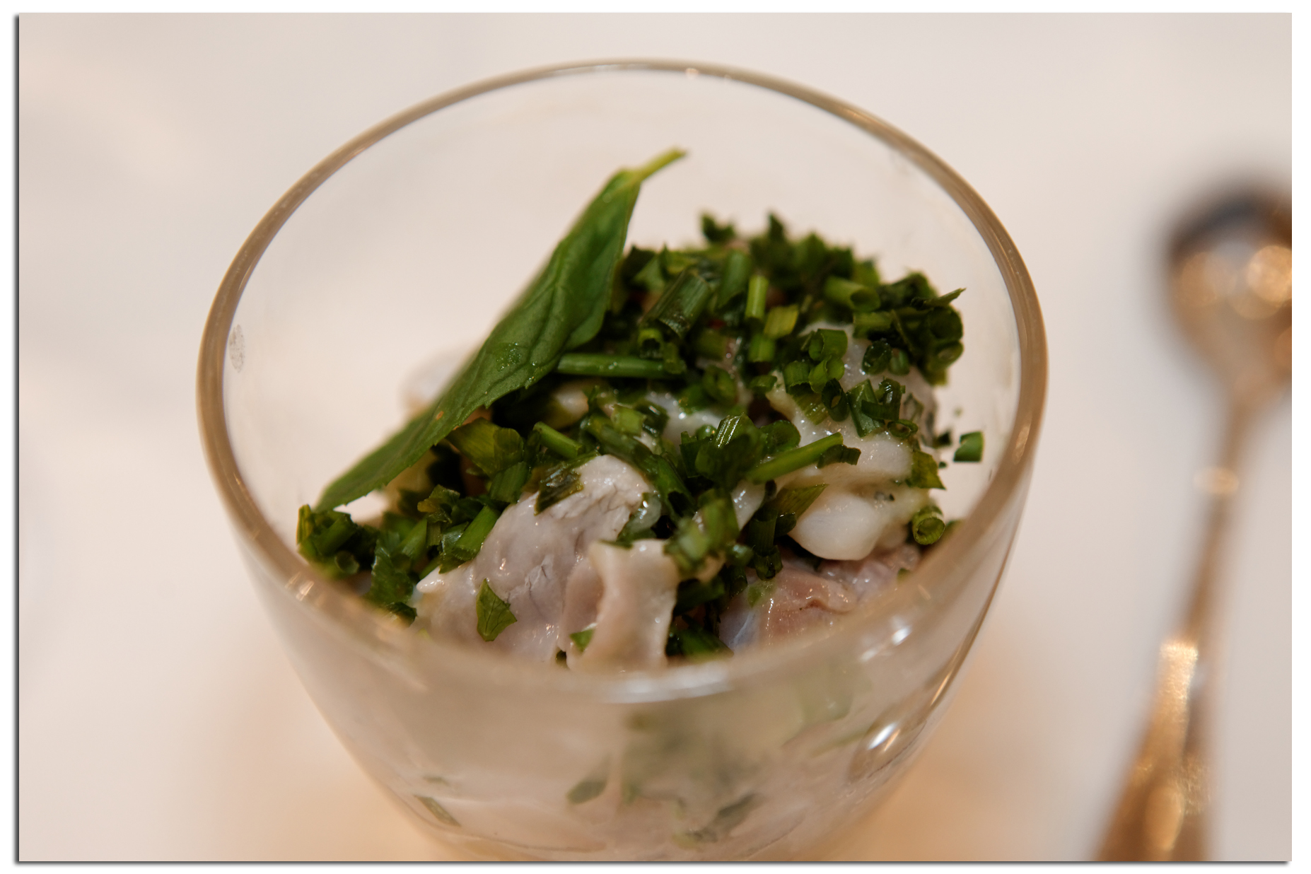 סביצ׳ה פארידה – מנה מצויינת לפתיחה, לטעמי. דג נא עם תפוח עץ כבוש במיץ לימון, קלילה ומעניינת.