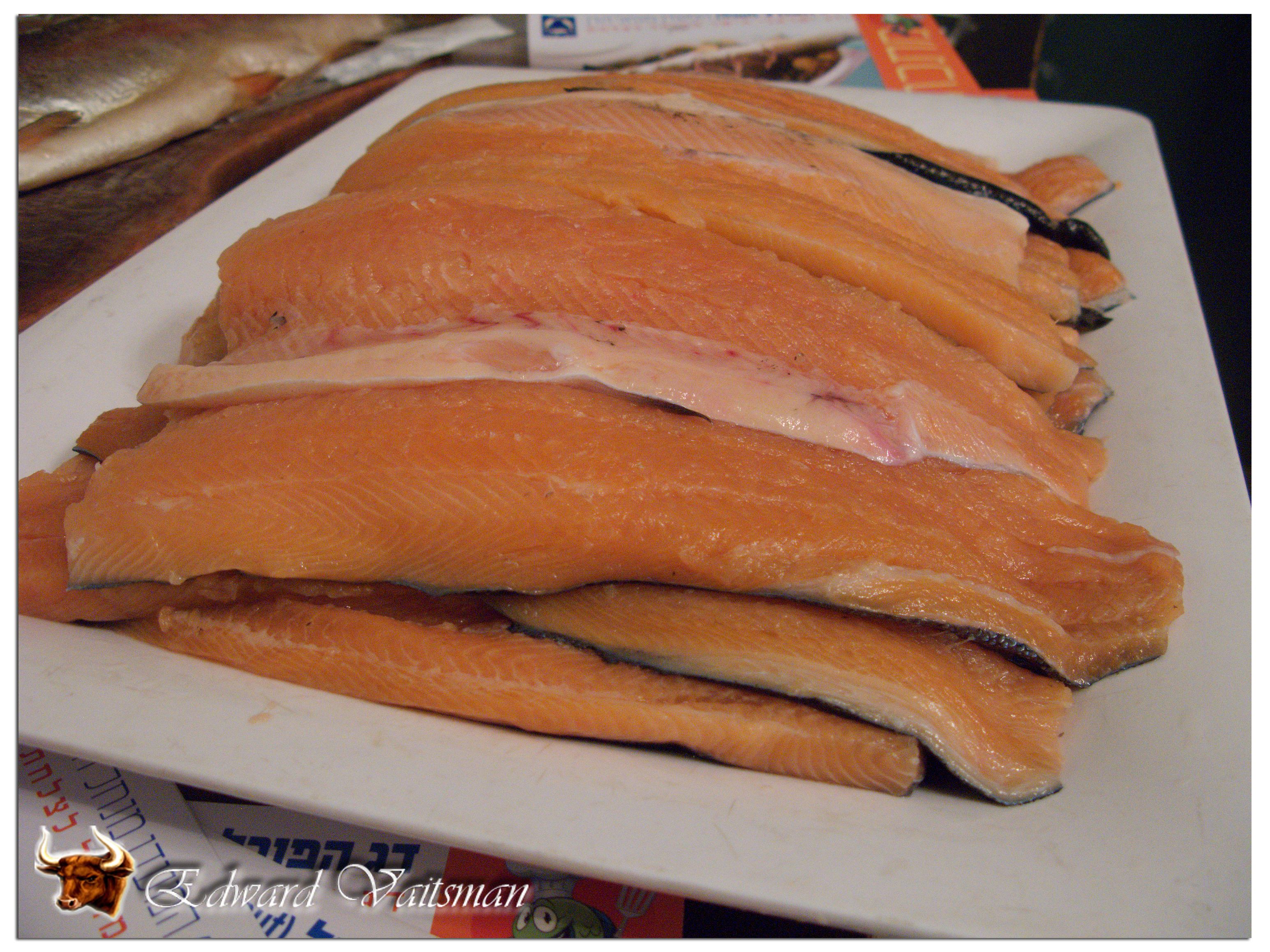 התחלנו מסקירה קצרה, אותה נתן מר אורי מיטל, מנכל חברת "דגי הדן". מהסקירה הסתבר שבארץ, שתרבות האוכל כאן היא ים-תיכונית, בכל זאת מעדיפים עוף! זאת רק סטטיסטיקה אומנם, אבל עדיין … קצת מוזר לי. בכל מקרה, קיבלנו הסבר גם על מהו בכלל הדג הזה – פורל, מדוע הוא בריא, איך מגדלים אותו, לאילו גדלים הוא מגיע. ולמרות שאני אישית, מאחר ודיי הכרתי את הדג הזה, חיכיתי הרבה יותר לתחילת האקשן, הנה כמה עובדות על דג הפורל – טרוטה, בעברית, שלא ידועים כל כך: