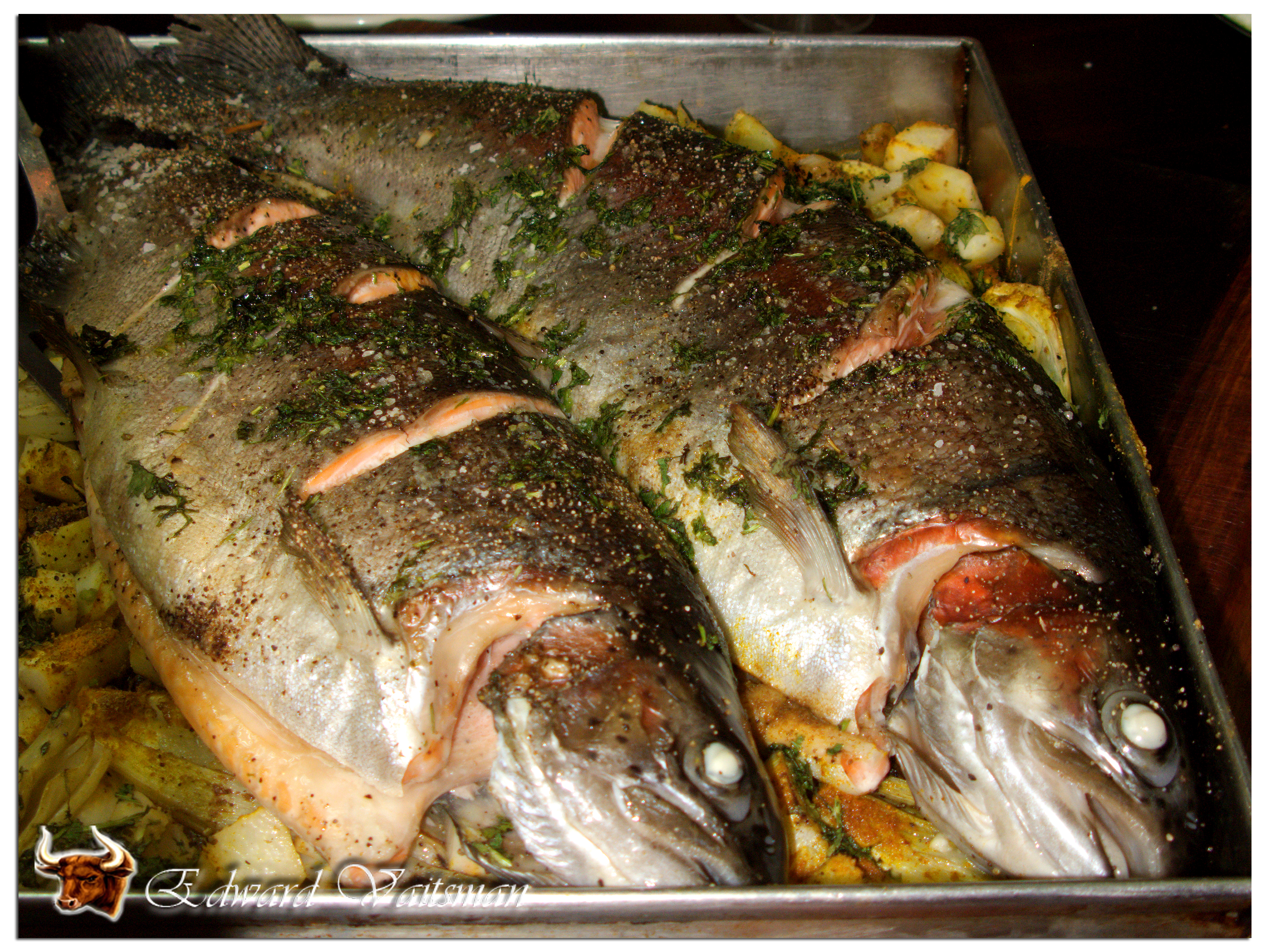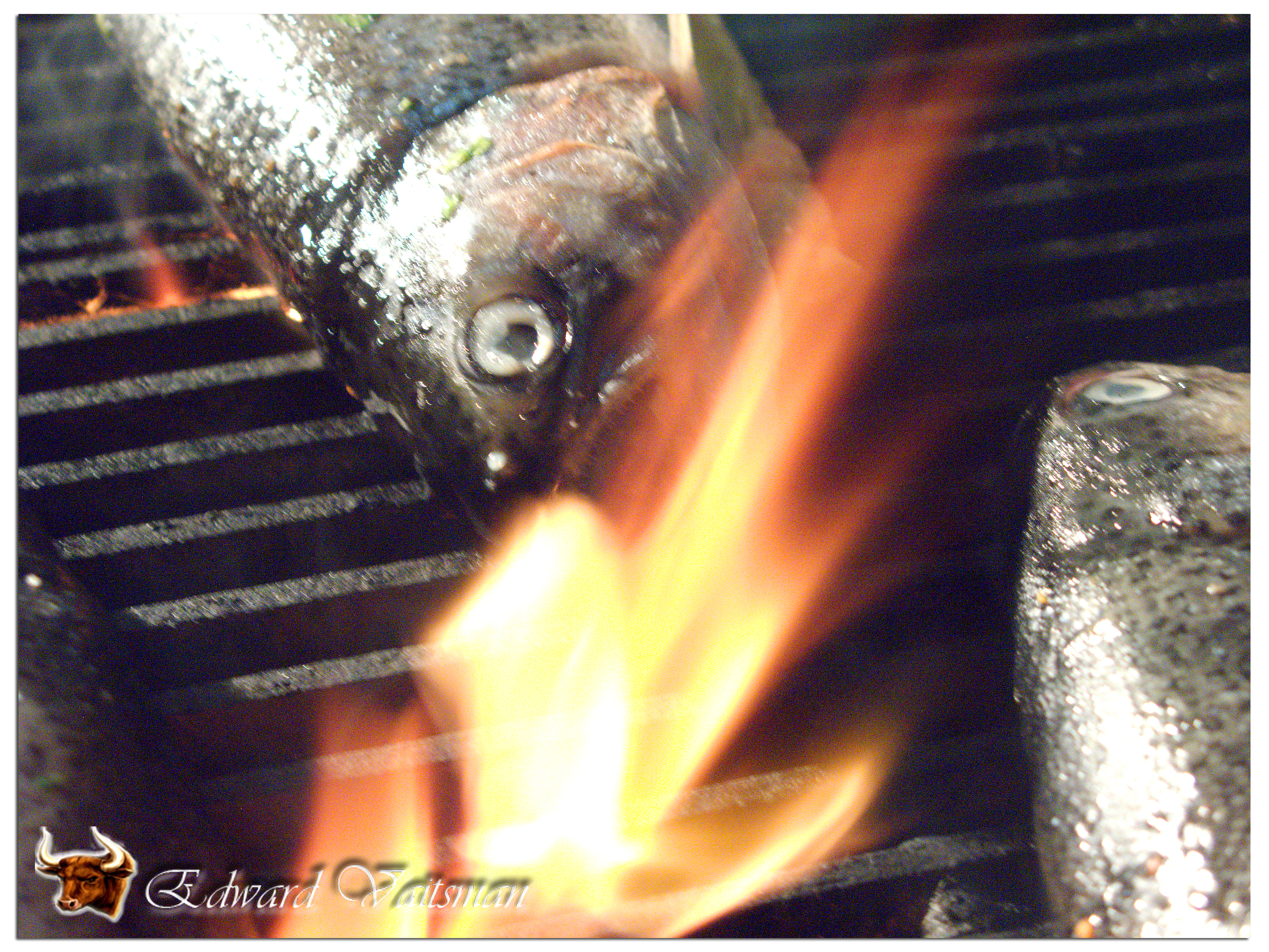 אני מגיש לכם פורל צלוי על האש בשום כבוש ושמן זית!