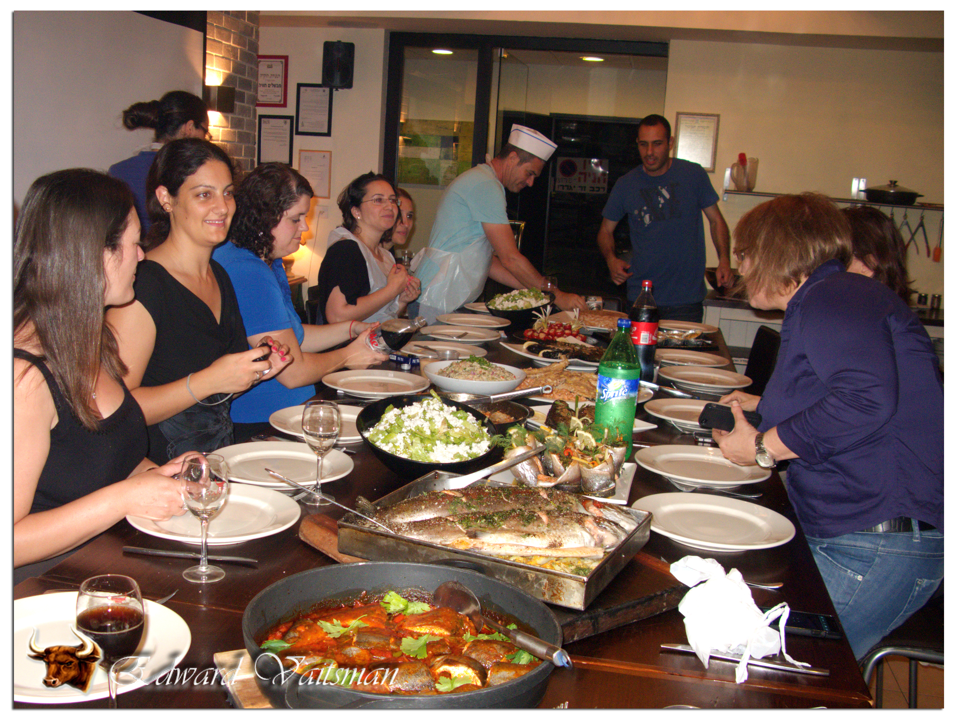 יחד איתי היו בסדנא חבריי הבלוגרים, כולם ללא יוצא מן הכלל בשלנים מעולים, ומה אני אגיד לכם… אומנם כן, קיבלנו מתכונים מודפסים, אבל באמת … שלא נוסיף לזה טאצ' אישי?! אין סיכוי! השולחן היה עמוס מעדנים שפשוט אי אפשר לתאר במלים. כל מה שאוכל לעשות בשבילכם בעניין הזה – זה להראות לכם את התמונות :).