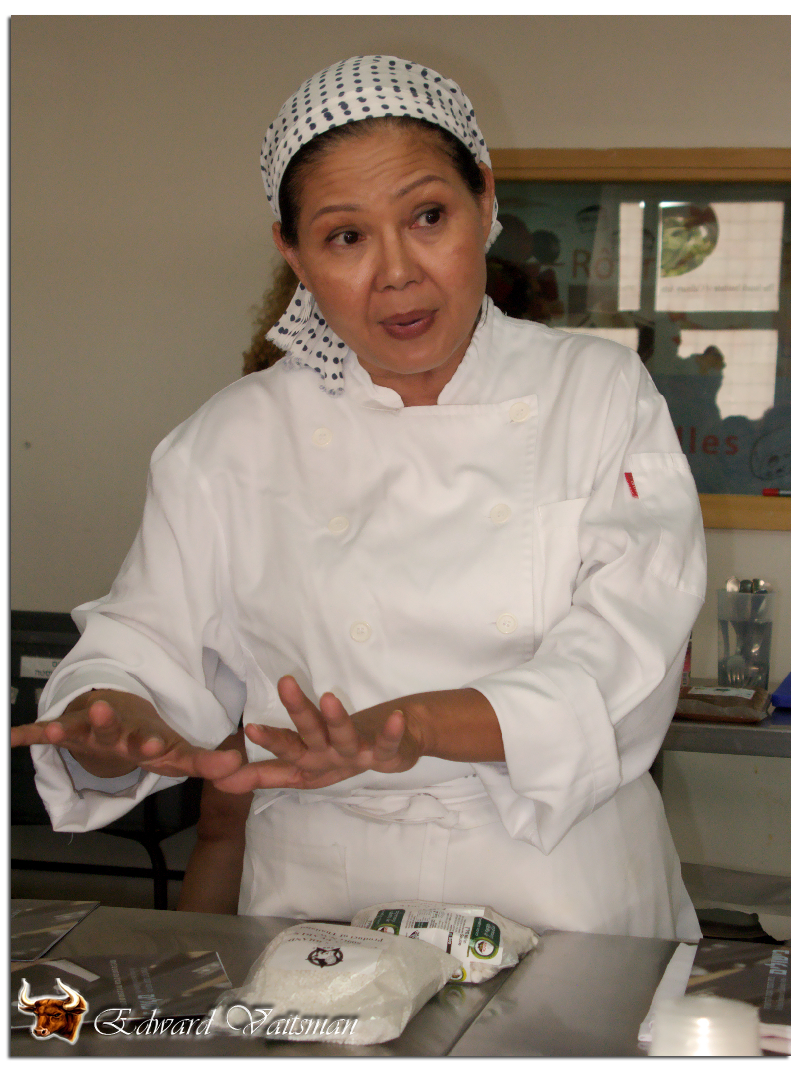 אה… והפעם – אין הרבה תמונות. הסיבה היא ש… בישלתי! :). תירוץ עלוב, אני יודע, אבל זה מה יש הפעם :). הספקתי רק לצלם את סוואלי מסבירה לנו על המוצרים – רוטב דגים, רוטב פאד תאי, רוטב סויה. היא סיפרה על סוגים שונים של איטריות אורז, שנבדלים על פי העובי, וגם על הטפיוקה – שזה בגלל משהו שרק שמעתי עליו ואף פעם לא ראיתי, שלא לדבר על לא טעמתי. חייב לומר, אגב, שממש, אבל ממש לא אהבתי את הטפיוקה הזה :). עוד משהו שדווקא שמחתי שיצא לי לטעום זה התמרהינדי. ראיתי את המצרך הזה בכמה וכמה מתכוני ברביקיו בסגנון אסיאתי, אבל לא ידעתי מה זה אז לא ניסיתי. עכשיו אני יודע וברור לי שאקנה.