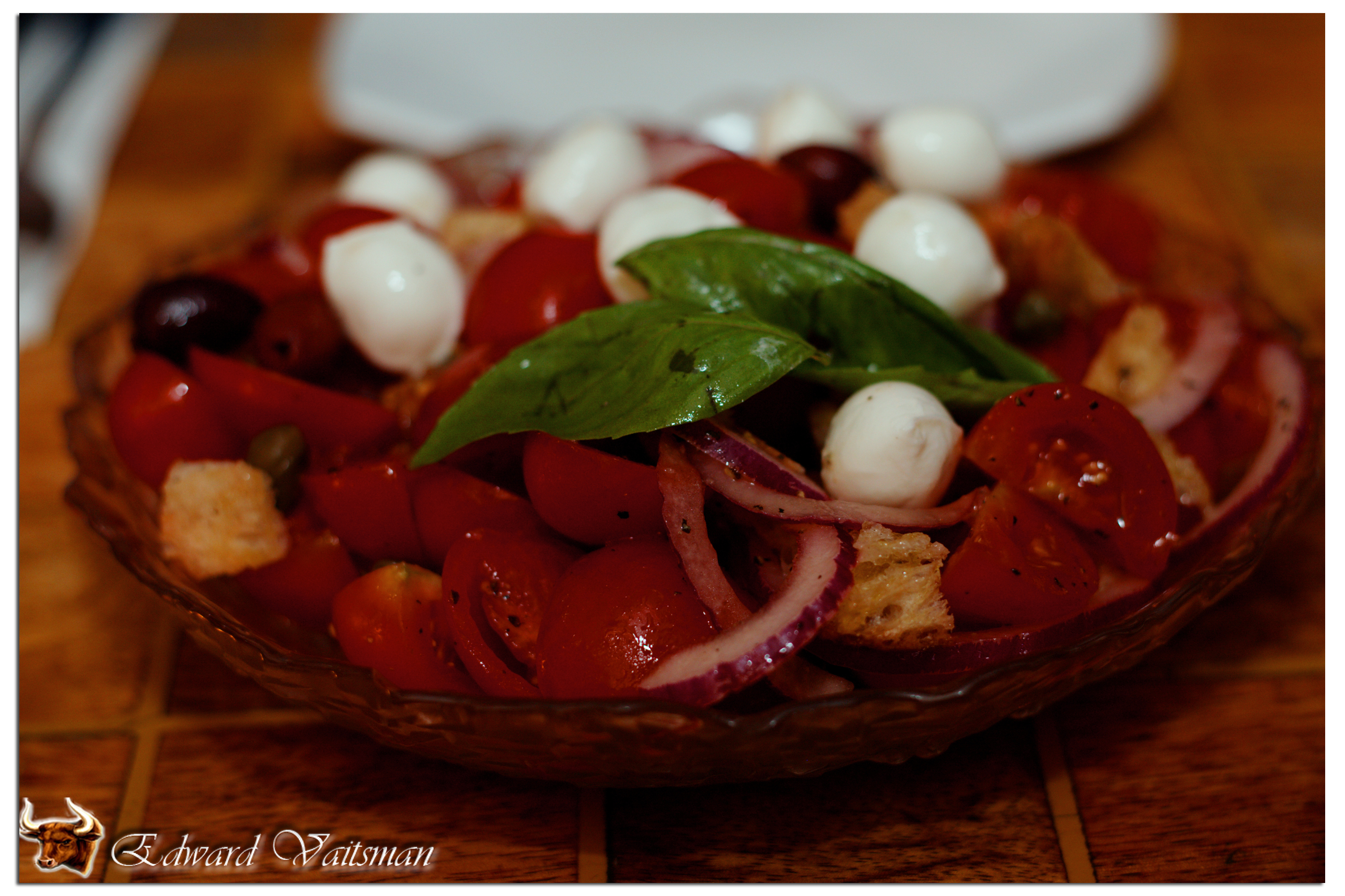 סלט – שילוב של סלט קפרזה עם סלט פנצנלה, בתוספת זיתים, צלפים, כוסברה ועוד… המנה גדולה – מספיקה בהחלט לזוג, והמחיר – 46 שקלים.
