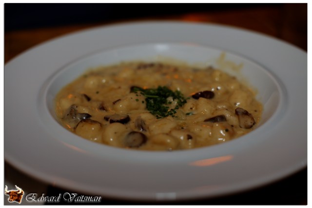 ניוקי בחמאת פטריות עם פטריות פורצ'יני וערמונים. תשמעו… זה משהו לגמרי מיוחד. מנה מספיקה לבן אדם אחד, והמחיר – 68 שקלים.