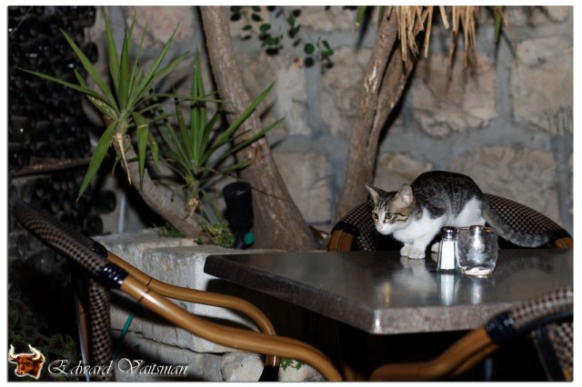 קינוחים… לקינוחים דווקא עברנו לשבת בחוץ. האוויר הירושלמי לא מחניק בערב כמו תל אביב או אשדוד… הלחות הרבה יותר נמוכה, ולכן זה פשוט נעים וכיף. אגב, ראיתי שם את הסועד המתוק ביותר במסעדה: