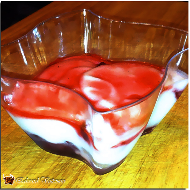 החלטתי, שבין דיווחים ממסעדות היוקרה אני אסדר לכם סוג של "מרענן חך" – משהו כדי לאפשר לכם מנוחה קטנה מהדברים הבאמת גדולים. אז הנה משהו שהוכן, האמת, דיי מזמן, אבל עד היום איכשהו לא הגעתי ללפרסם את זה. אז הנה… קינוח מעניין ומאוד מאוד קליל – מוס יוגורט ואוכמניות עם רוטב קרם דה קאסיס. גילוי נאות – אני הייתי אחראי רק על הסירופ :).