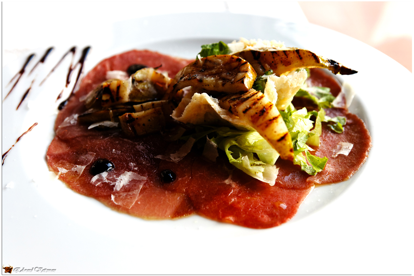 מנה ראשונה – קרפצ'ו בופאלו עם אגסים צלויים על הגריל ובלסמי מצומצם… במילה אחת – להתענג! ואת הרעיון של אגס על הגריל בהחלט אימצתי לארסנל שלי.