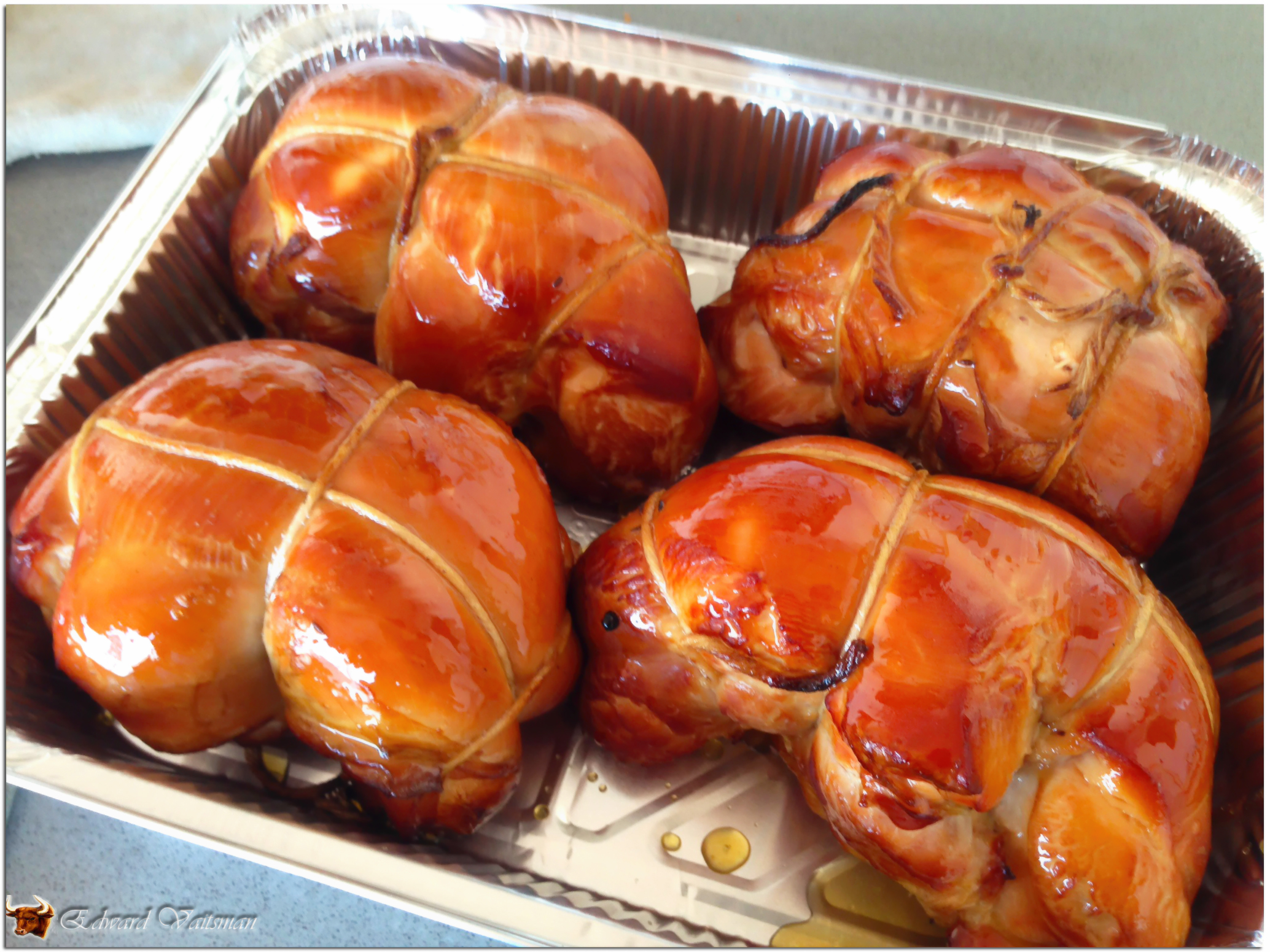 את ה"פיניש", הזיגוג שנתתי לפסטרמה, החלטתי לעשות הכי פשוט שיש. 4 כפות דבש, כף אחת של מיץ תפוזים, חימום קצר במיקרו וערבוב טוב. זהו. עם התערובת הזאת מברישים את הפסטרמה כחצי שעה לפני סיום העישון (או הצליה, אם זה בתנור).